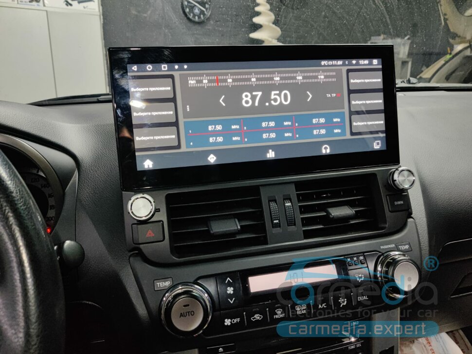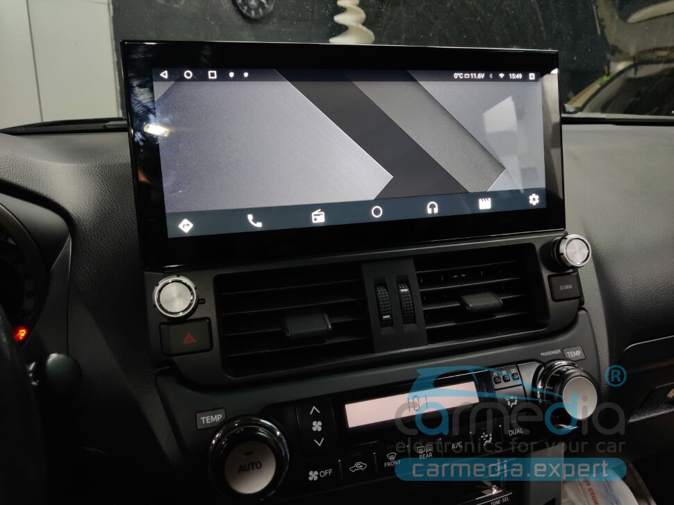 Штатная магнитола Toyota Land Cruiser Prado 150 (2009г.в. по 2013г.в.) для комплектаций без кругового обзора (с заводской задней камерой или без) CARMEDIA KP-T1208 (TS10 8×2,3 Ghz, 6Gb Ram, 128Gb ROM, IPS LCD, Wi-Fi, Bluetooth, external microphone, 4G встроен, DSP)